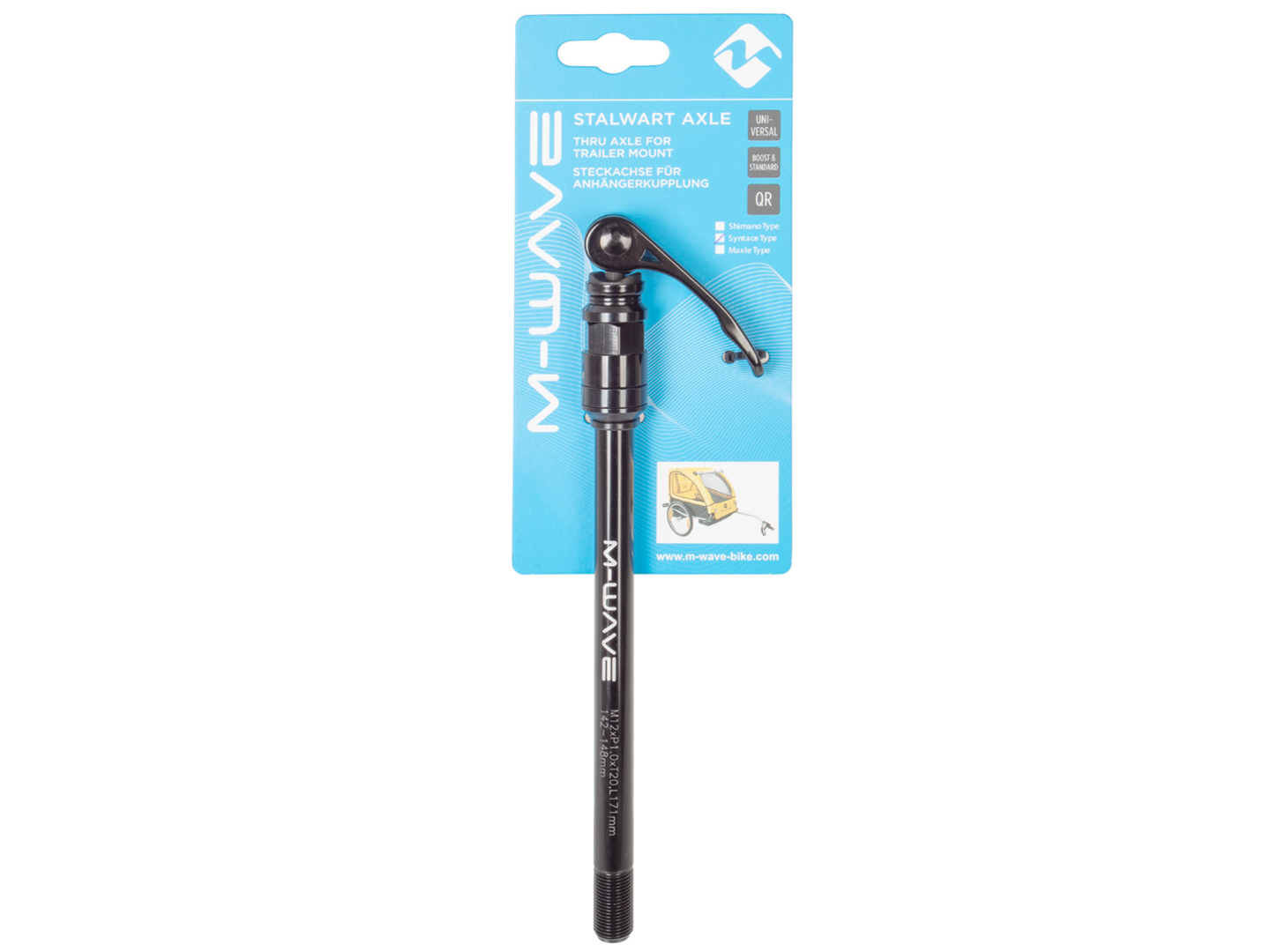 - pro beznářaďovou montáž adaptérů pro přívěsy na jízdní kola na náboje s průchozí osou 12 mm