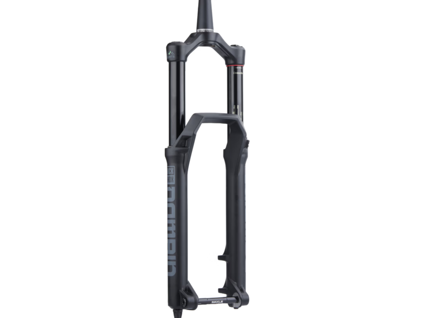 Vidlice MTB 29"offset 44mm pouze pro kotoučové brzdy úchyt PM osa Boost 15x110 /osa MAXLE je součástí balení/ zdvih 170mm krk ALU 1 1/8"-1-1/2" (=1,5") TAPERED délka 264mm barva černá lesklá - šedý polep hmotnost 2500g /váženo /
